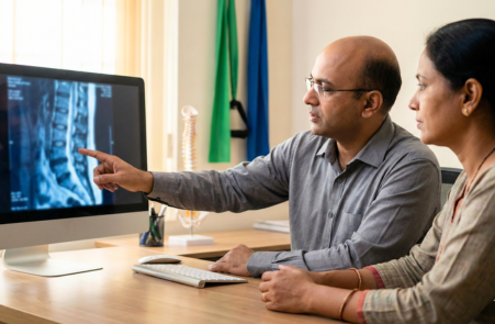 • Guidance on medicines, injections (if needed), exercise/physio, precautions, and follow-up